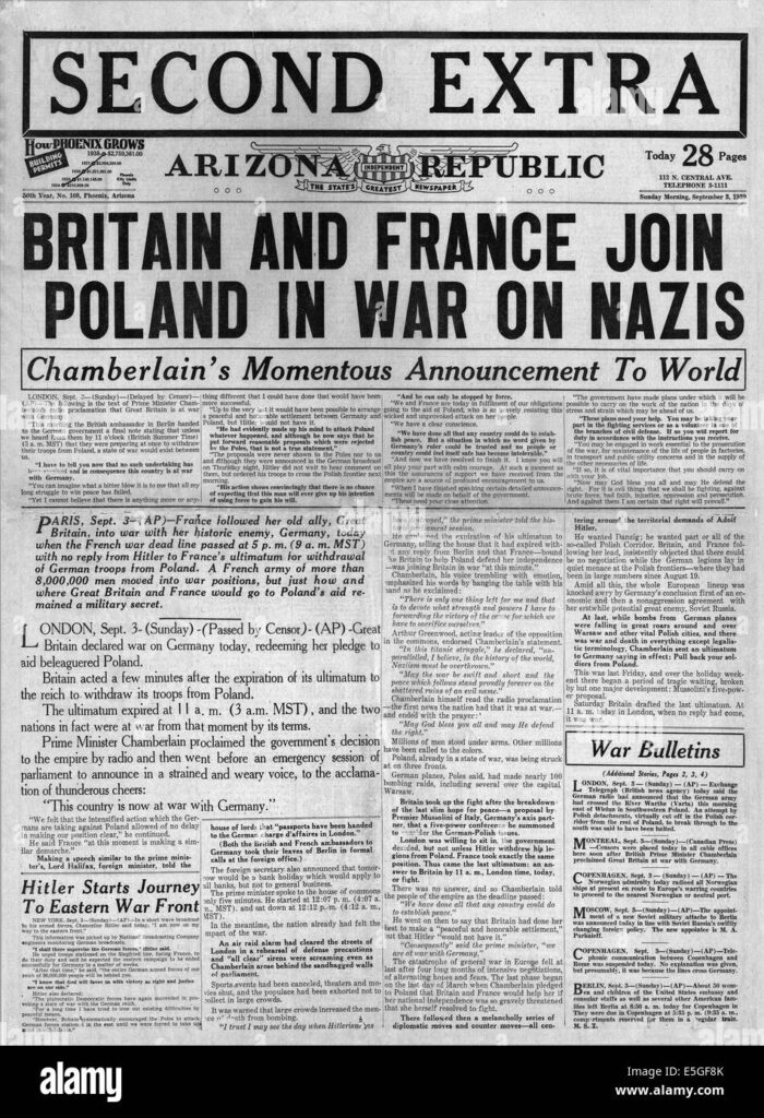 Am 3. September 1939 erklärten Großbritannien und Frankreich Deutschland den Krieg, nachdem das Deutsche Reich Polen überfallen hatte. Damit begann ein weltweiter Konflikt. Großbritannien stellte Deutschland am Morgen ein Ultimatum, die Truppen aus Polen abzuziehen, was unbeantwortet blieb. Premierminister Neville Chamberlain verkündete daraufhin im Radio: „I have to tell you now that so much that no such undertaking has been received, and that consequently this country is at war with Germany.”